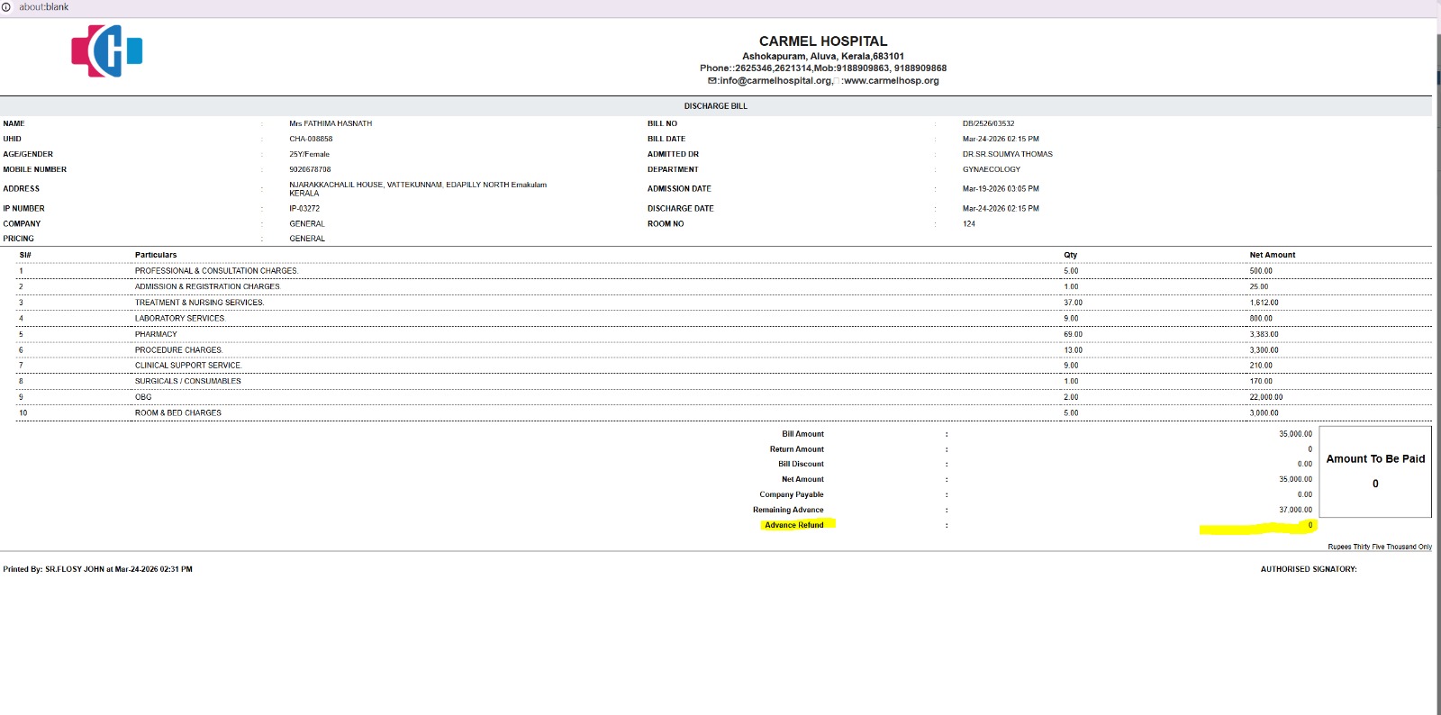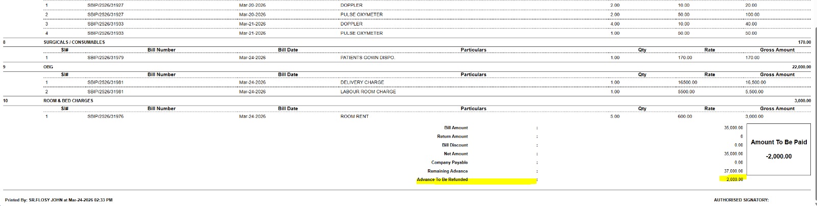 Discharge - Bill Print - Detailed bill print -> refund amount is showing but in summary bill print - >refund amount is not showing