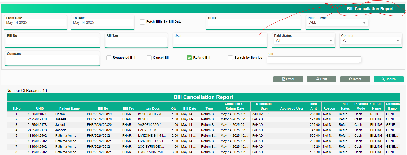 Change the report display name to Bill Cancellation/Refund Report from Bill Cancellation Report.