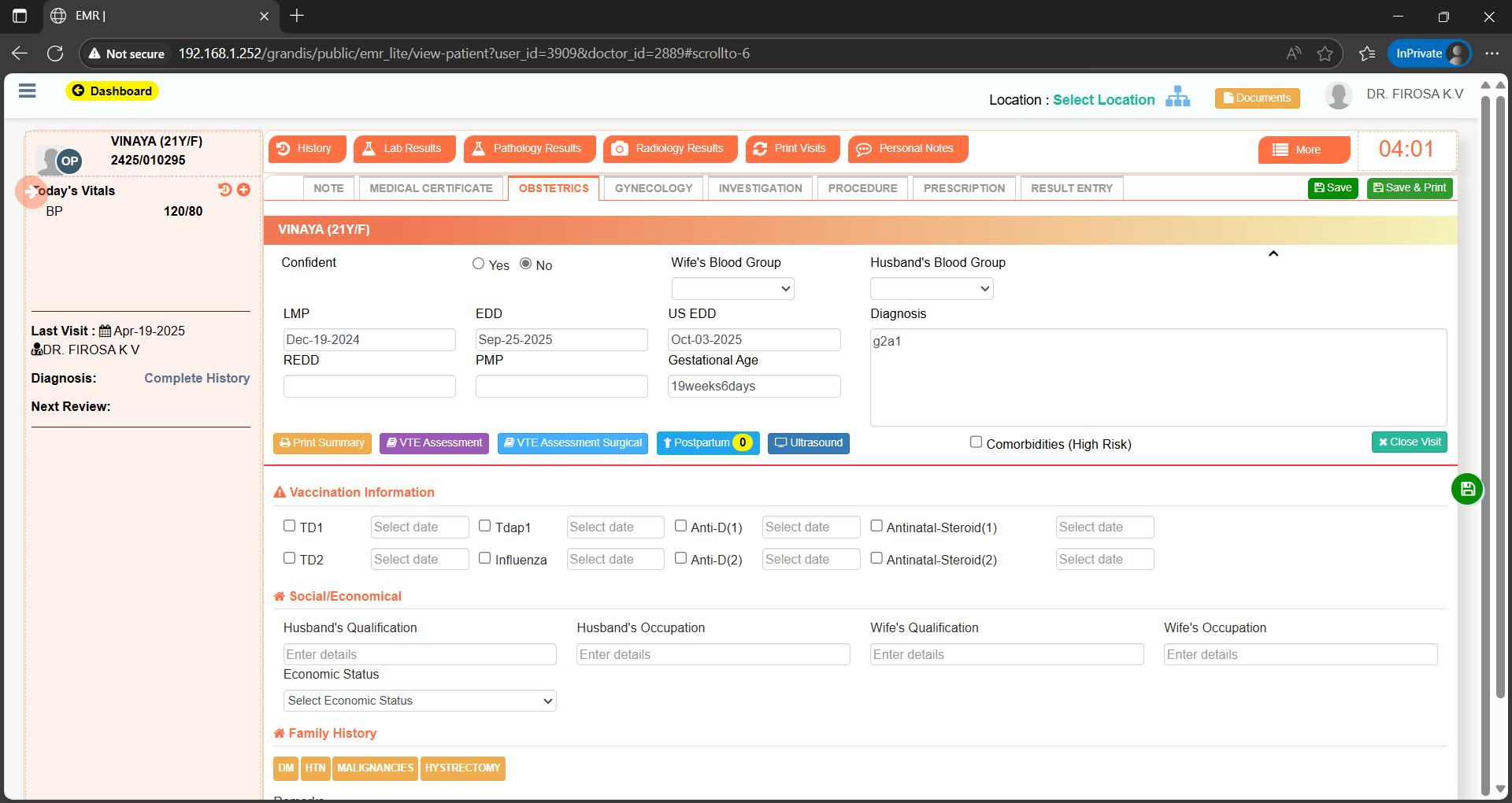 In gynecologist's EMR screen does not load the old obstetric data entered by the patient when they come for his next visit.